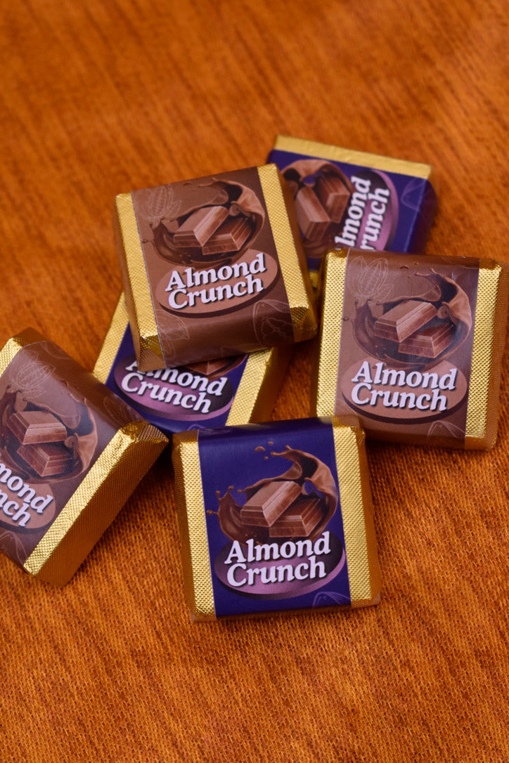 Almond Crunch features 8 delightful pieces packed with rich chocolate and crunchy almonds. Each bite delivers a perfect blend of taste and texture, all conveniently packaged in a resealable pouch for freshness. Perfect for a quick snack or a sweet treat on the go!