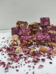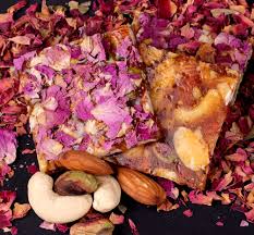 Almond Rose Petal  six pics —a luxurious treat featuring almonds, rose, pistachios, and rich chocolate, all beautifully packaged in an elegant pouch. Each bite delivers a perfect blend of flavors and textures, making it an ideal indulgence for any occasion!