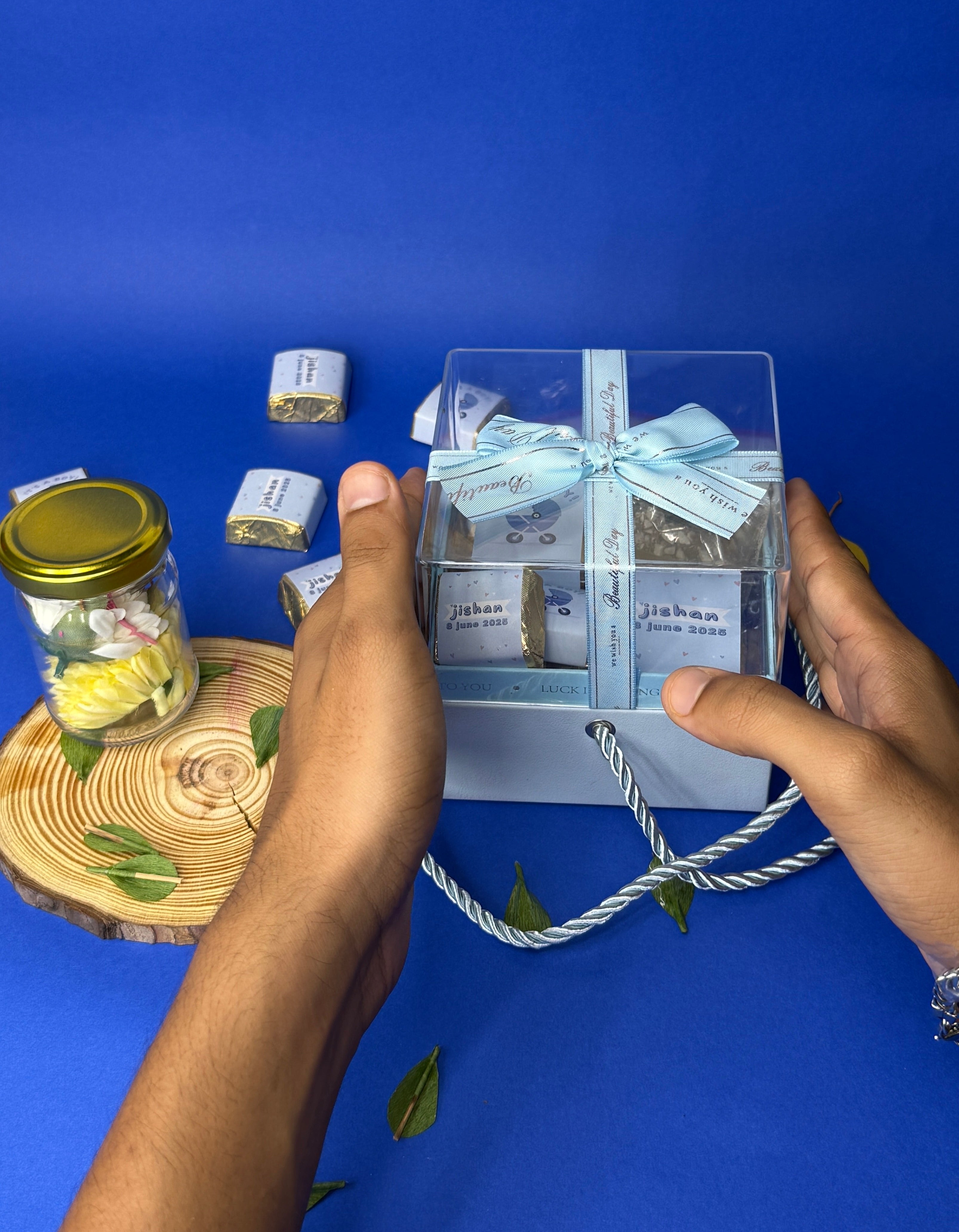 A stylish and delicious way to celebrate someone’s big day — beautifully packed with a satin ribbon, clear compartments, and premium treats that add joy to every moment.